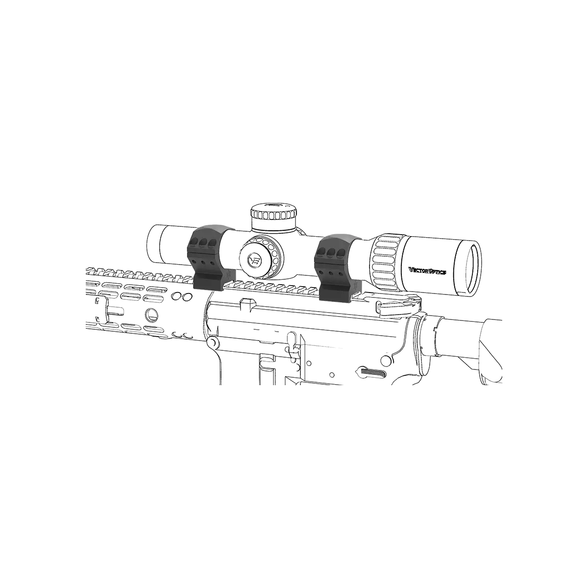 Montura dispune, de asemenea, de interfața noastră dovedită ScopeLink™ care permite montarea vizorelor de rezervă atât în partea de sus, cât și la 45 de grade, păstrând dimensiuni reduse.
