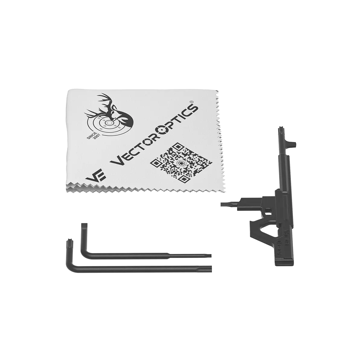 Pachetul include: montură , capac din cauciuc pentru lentile, chei hexagonale, șuruburi și cârpă de curățare.